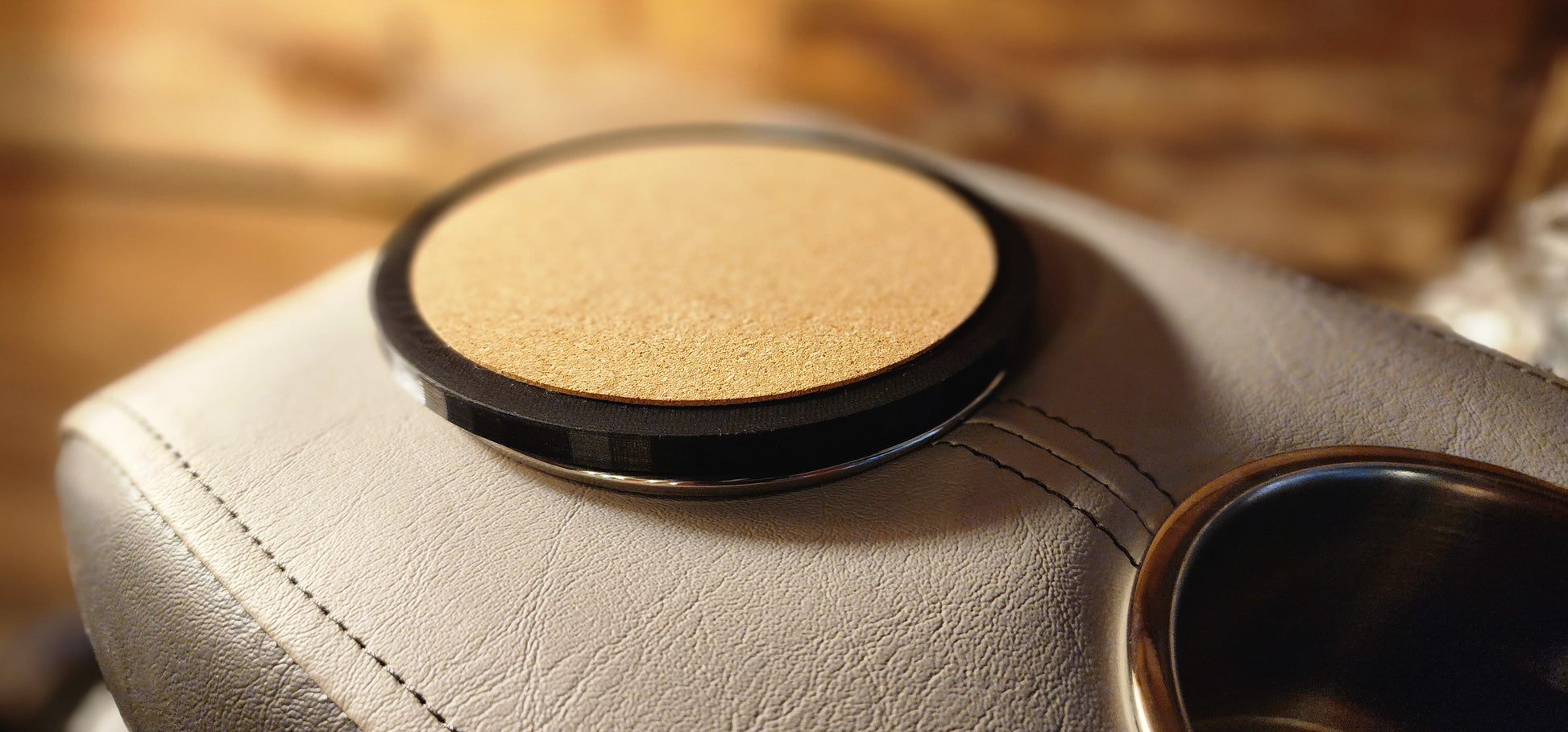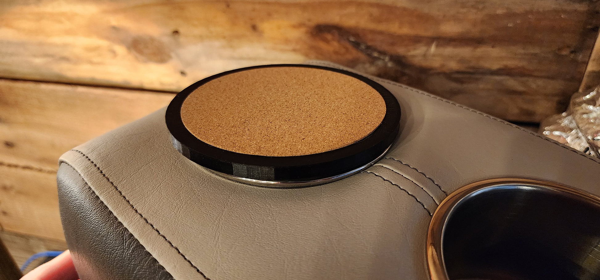 Level up your RV seating experience with the CupCap™ Adjustable Cup Holder Insert, specially designed for holding stemmed wine glasses and coffee mugs in standard RV furniture.