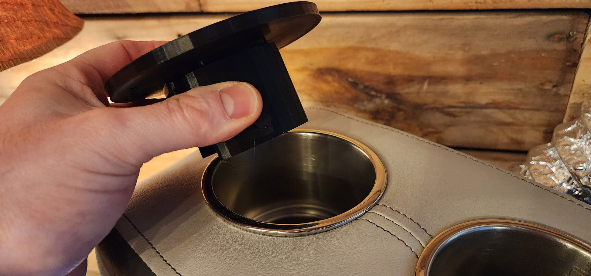 - Converts RV cup holders to fit traditional wine glasses and coffee mugs
